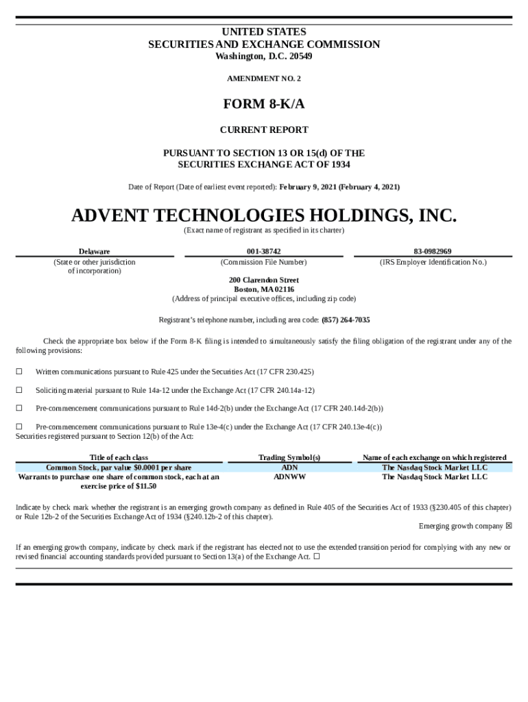 What is ADVENT TECHNOLOGIES HOLDINGS, INC. (. EDGAR Online Pro Form?