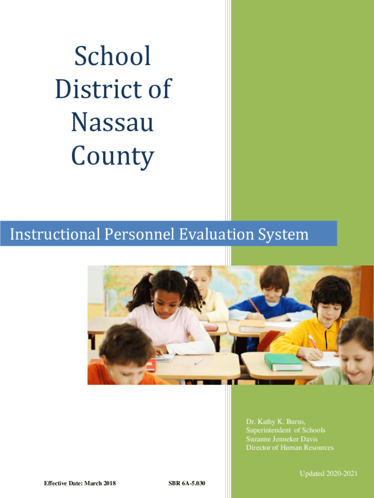 School District of Nassau County Instructional Personnel Evaluation System Dr. Kathy K. Burns, Superintendent of Schools Suzanne Jennifer Davis Director of Human ResourcesUpdated 20202021 Effective