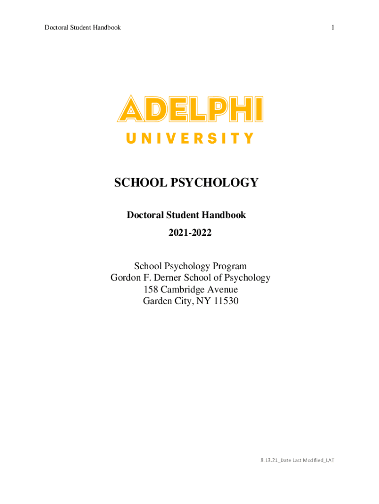 1Doctoral Student HandbookSCHOOL PSYCHOLOGY Doctoral Student Handbook 20212022 School Psychology Program Gordon F. Lerner School of Psychology 158 Cambridge Avenue Garden City, NY 115308.13.21_Date