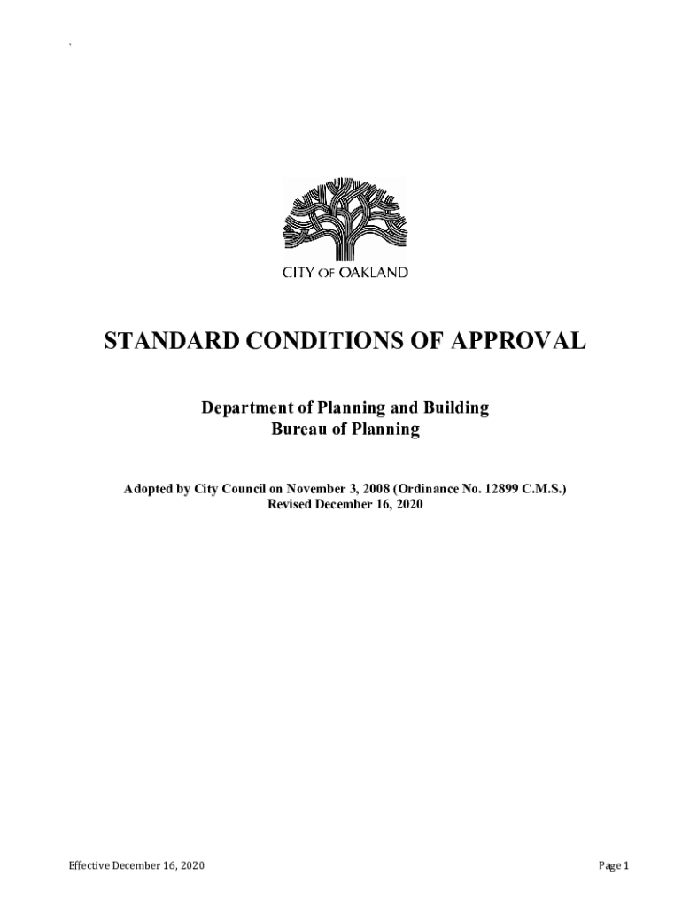 `STANDARD CONDITIONS OF APPROVAL Department of Planning and Building Bureau of Planning Adopted by City Council on November 3, 2008 (Ordinance No. 12899 C.M.S.) Revised December 16, 2020Effective