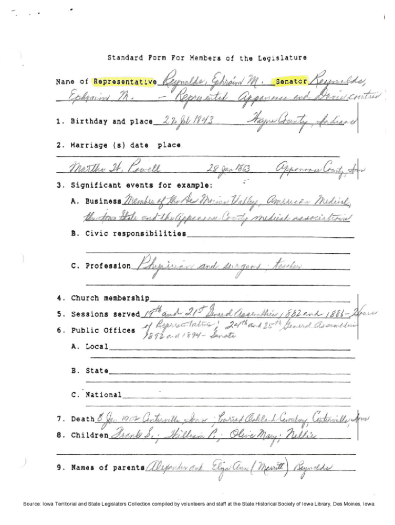 Get the free Standard Form For Members of the Le91slature Senator; (, 1.4/l ...