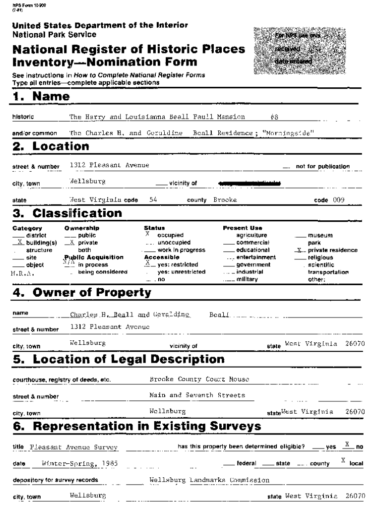 Get the free NPS Form 10900 10240018 United States Department of the Interior ...