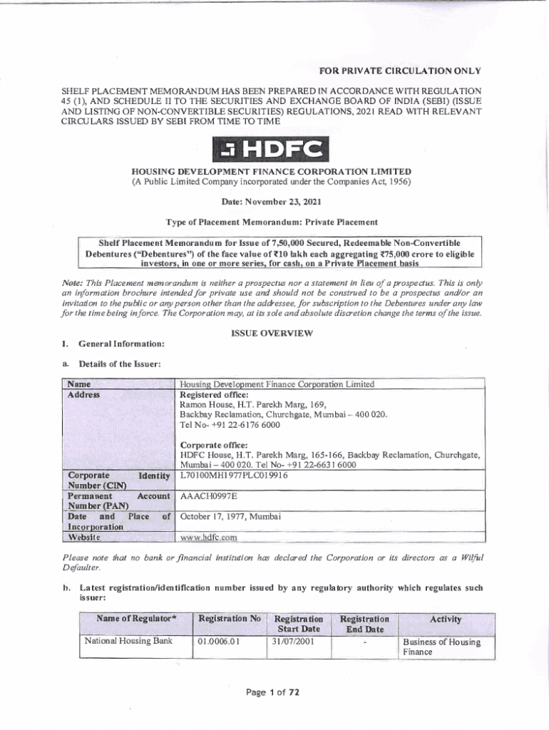 FOR PRIVATE CIRCULATION ONLY SHELF PLACEMENT MEMORANDUM HAS BEEN PREPARED IN ACCORDANCE WITH REGULATION 45 (I), AND SCHEDULE II TO THE SECURITIES AND EXCHANGE BOARD OF INDIA (SEMI) (ISSUE AND LISTING