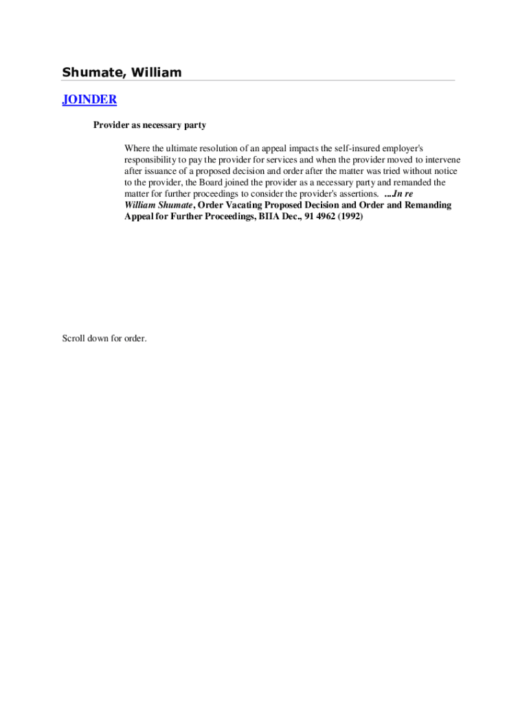 Humane, William JOINER Provider as necessary party Where the ultimate resolution of an appeal impacts the self insured employer\'s responsibility to pay the provider for services and when the provider