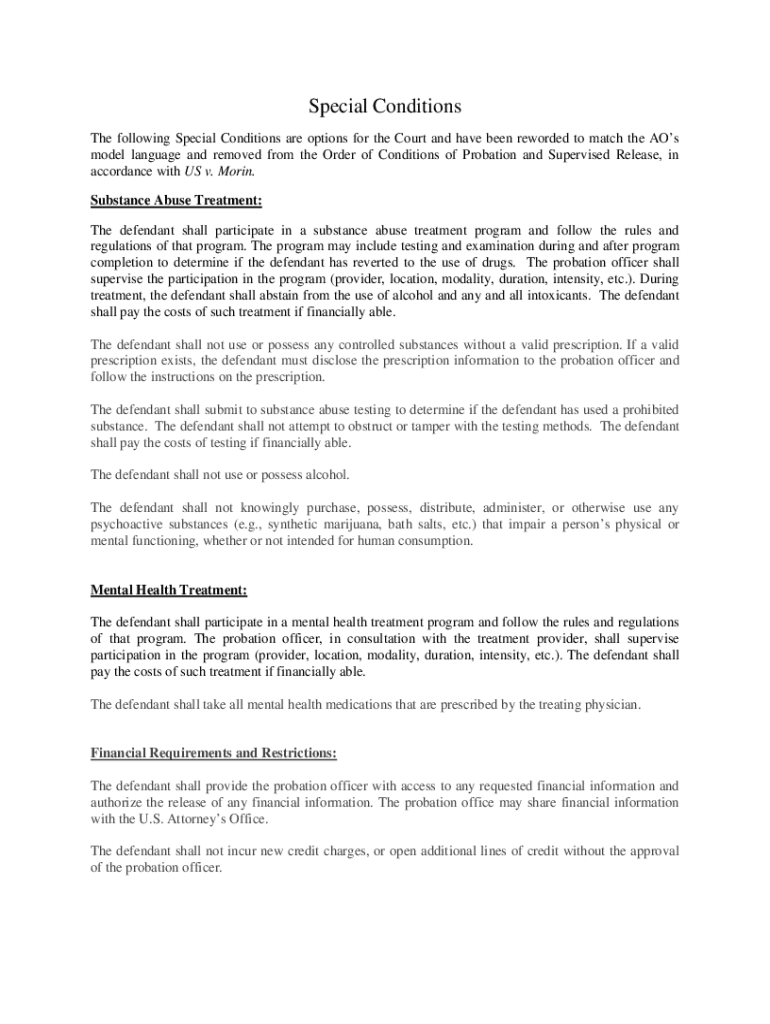 Special Conditions The following Special Conditions are options for the Court and have been reworded to match the AOS model language and removed from the Order of Conditions of Probation and Supervised