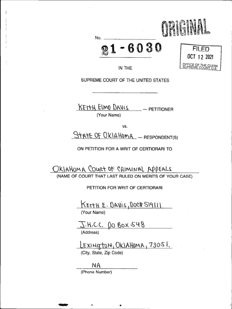 Ilplllll h I \'gas i S No.ifiledOCT 12 2021IN THE SUPREME COURT OF THE UNITED States TLN×Q EFL PETITIONER(Your Name) vs. Of Horn A RESPONDENT(S)ON PETITION FOR A WRIT OF CERTIORARI TOQMaUoha Conner