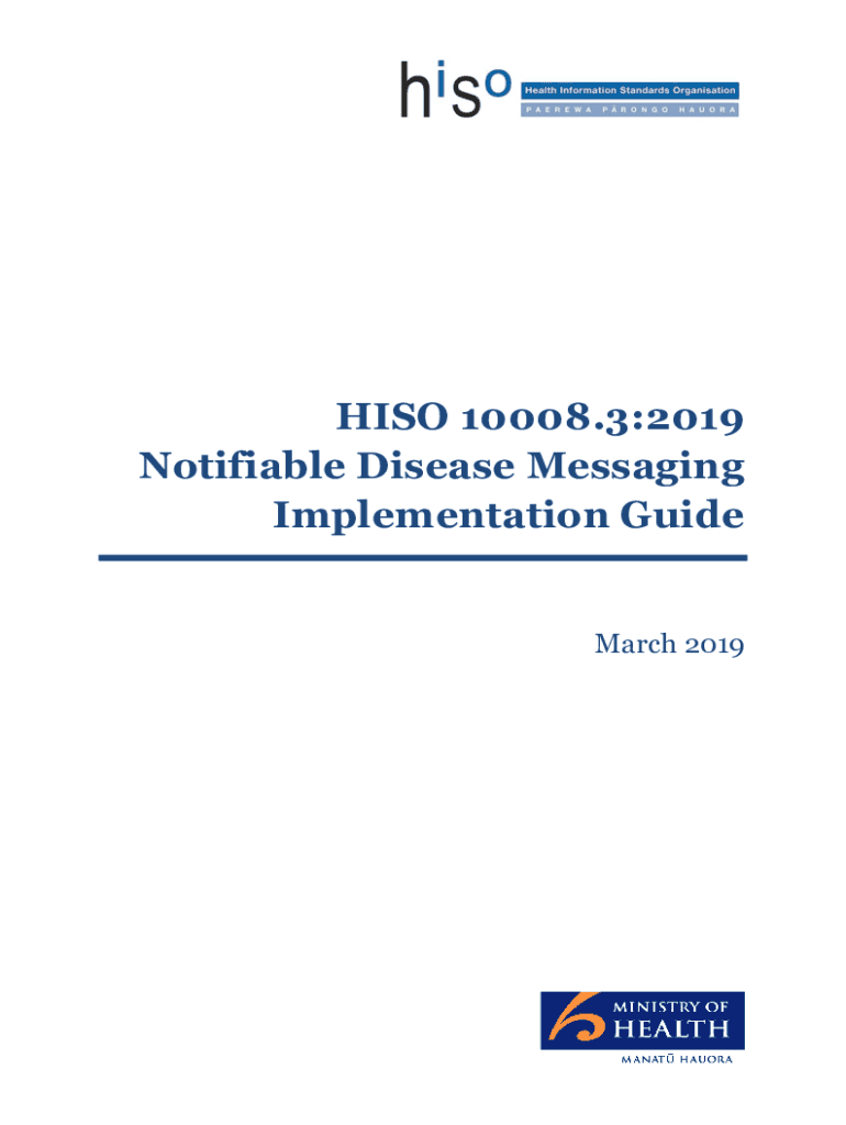 HIS 10008.3:2019 Notifiable Disease Messaging Implementation Guide March 2019Document information HIS 10008.3:2019 Notifiable Disease Messaging Implementation Guide is a standard approved for the
