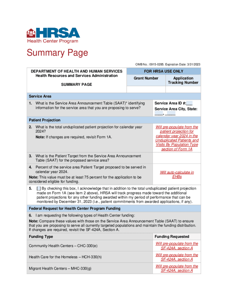 Get the free The Health Center Program Application Forms - OMB 0915-0285 - bphc hrsa