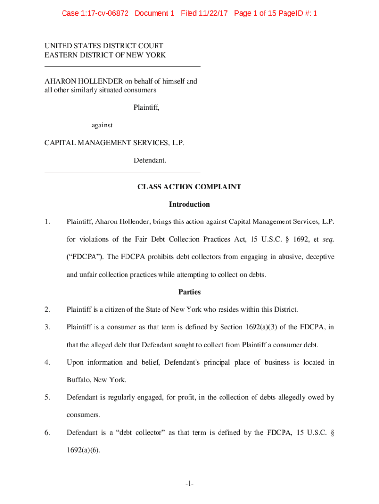 Get the free Hollender v. Capital Management Services, L.P. - 1