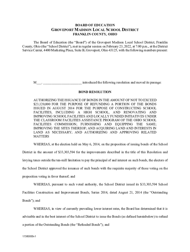 BOARD OF EDUCATION REPORT MADISON LOCAL SCHOOL DISTRICT FRANKLIN COUNTY, OHIO The Board of Education (the Board) of the Grove port Madison Local School District, Franklin County, Ohio (the School
