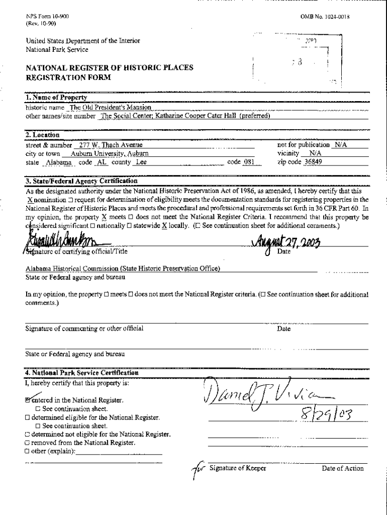 NFS Form 10900 (Rev. 1090)OMB No. 10240018United States Department of the Interior National Park ServiceNATIONAL REGISTER OF HISTORIC PLACES REGISTRATION FORM 1. Name of Property historic name The