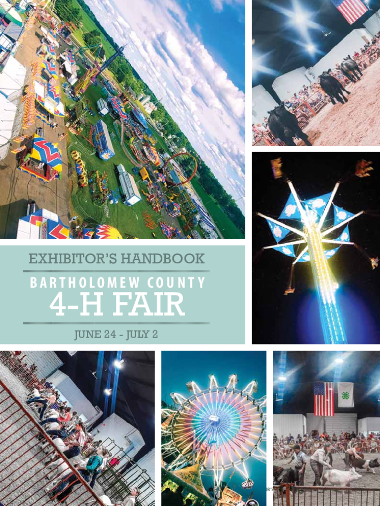 EXHIBITORS HANDBOOKBARTHOLOMEW CO U N T Y4H Fair June 24 July 2EXHIBITORS HANDBOOK | 2022 BARTHOLOMEW COUNTY 4H FAIR 1A FAIR WELCOME TO THE 2022 BARTHOLOMEW COUNTY 4H FAIR! The fairgrounds were originally