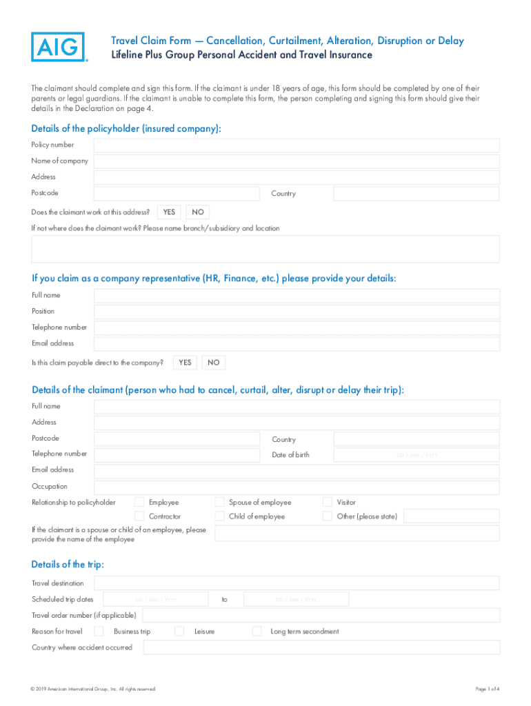 Travel Claim Form Cancellation, Curtailment, Alteration, Disruption or Delay Lifeline Plus Group Personal Accident and Travel Insurance The claimant should complete and sign this form. If the claimant