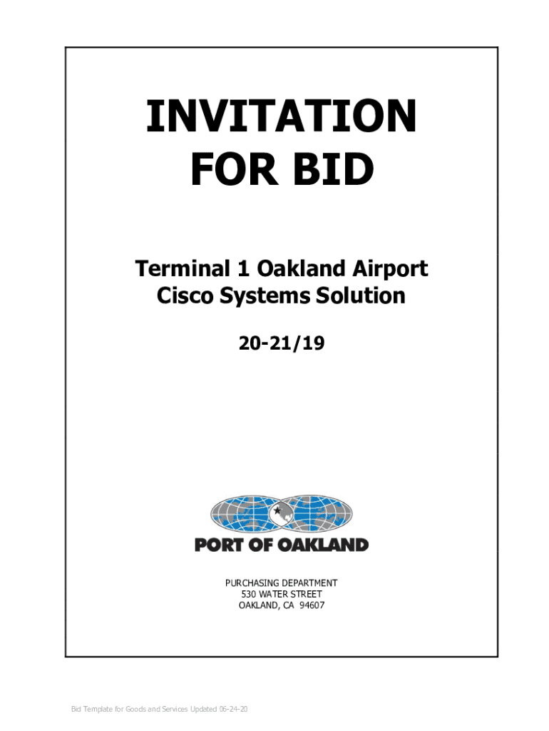 INVITATION FOR BID Terminal 1 Oakland Airport Cisco Systems Solution 2021/19PURCHASING DEPARTMENT 530 WATER STREET OAKLAND, CA 94607Bid Template for Goods and Services Updated 062420INVITATION FOR