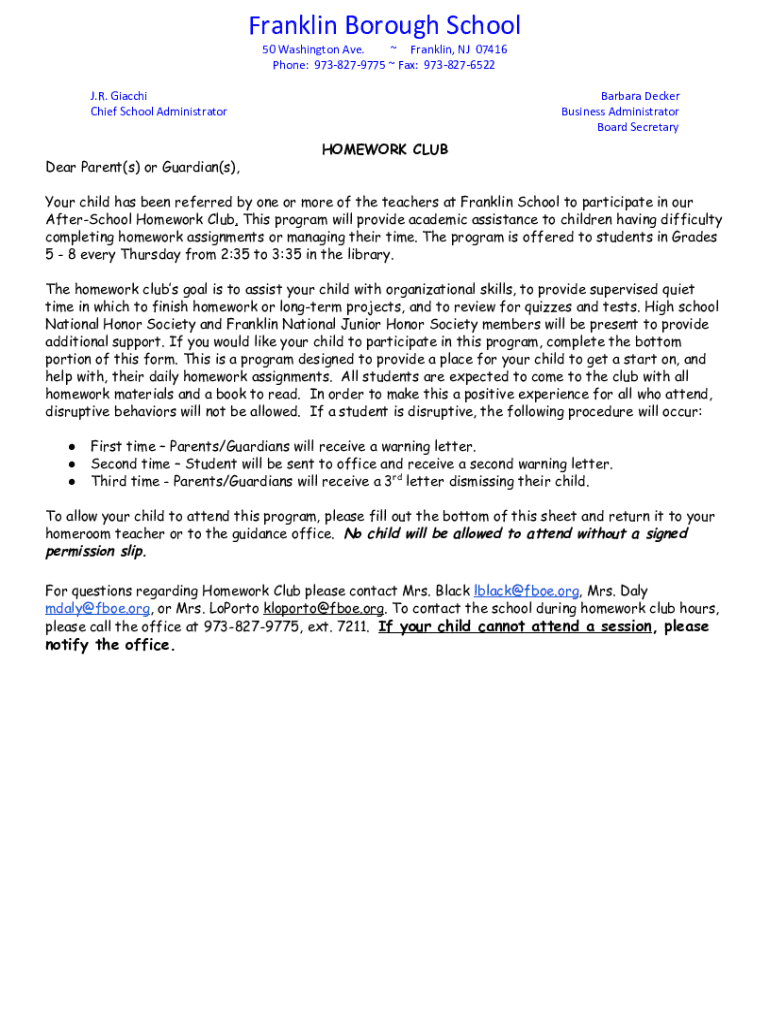 Franklin Borough School 50 Washington Ave. Franklin, NJ 07416 Phone: 9738279775 Fax: 9738276522 J.R. Gnocchi Chief School Administrator Barbara Decker Business Administrator Board SecretaryHOMEWORK