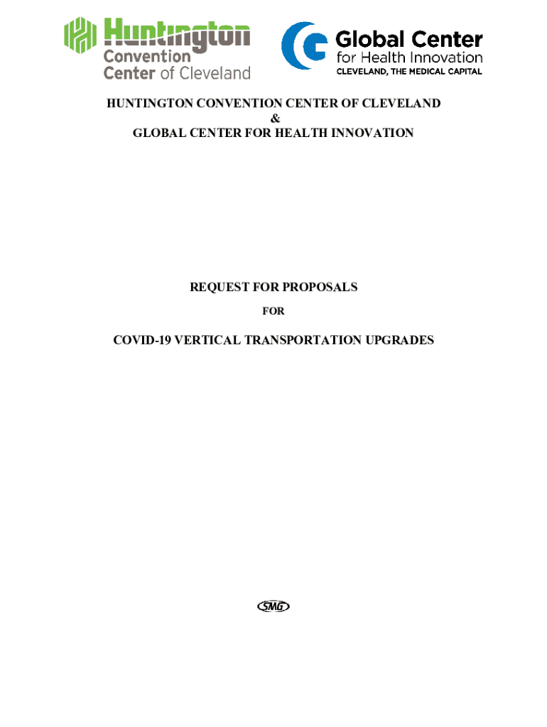 HUNTINGTON CONVENTION CENTER OF CLEVELAND & GLOBAL CENTER FOR HEALTH INNOVATIONREQUEST FOR PROPOSALS FORCOVID19 VERTICAL TRANSPORTATION UPGRADESHUNTINGTON CONVENTION CENTER OF CLEVELAND AND GLOBAL