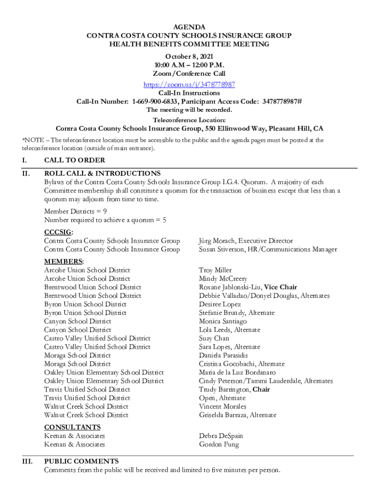 Get the free www.cccsig.orgwp-contentuploadsGENDA CONTRA COSTA COUNTY SCHOOLS INSURANCE GROUP HEA...