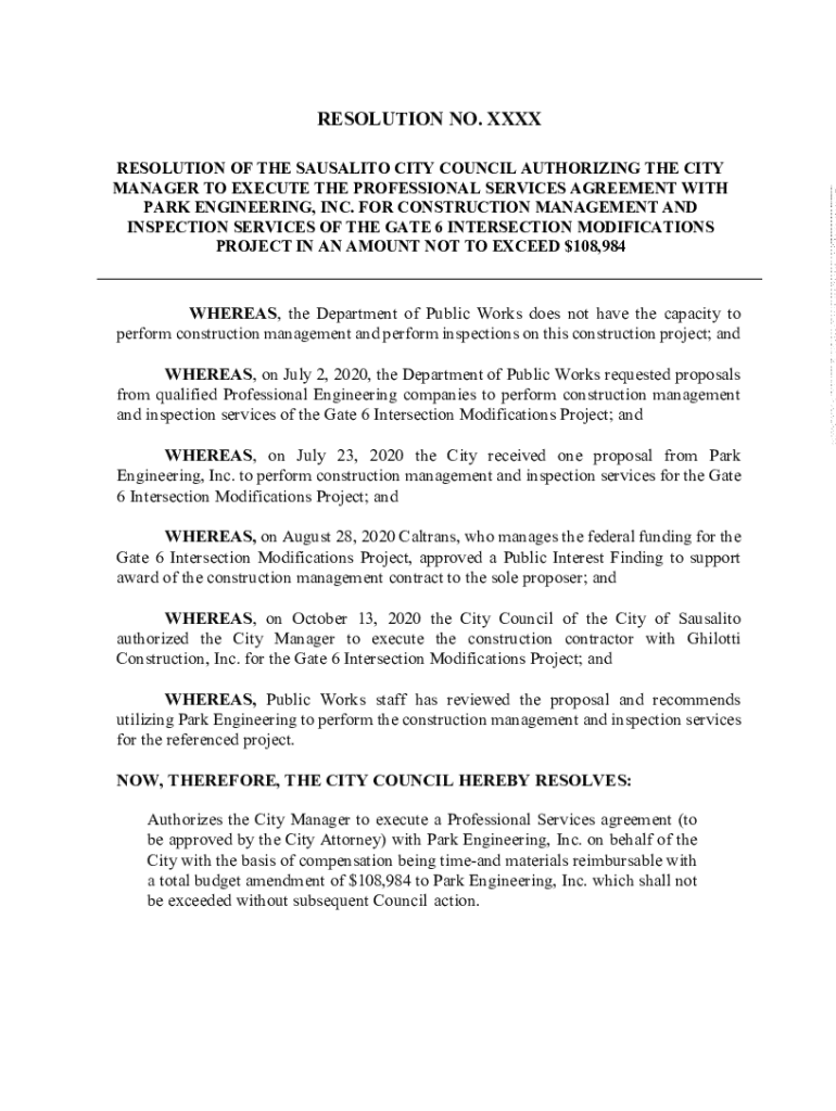Get the free RESOLUTION NO. XXXX A RESOLUTION OF THE CITY COUNCIL ...