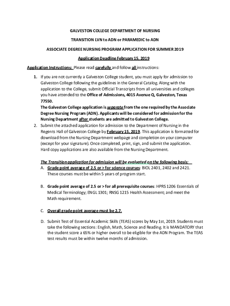 Get the free GALVESTON COLLEGE DEPARTMENT OF NURSING TRANSITION LVN to ADN or ...