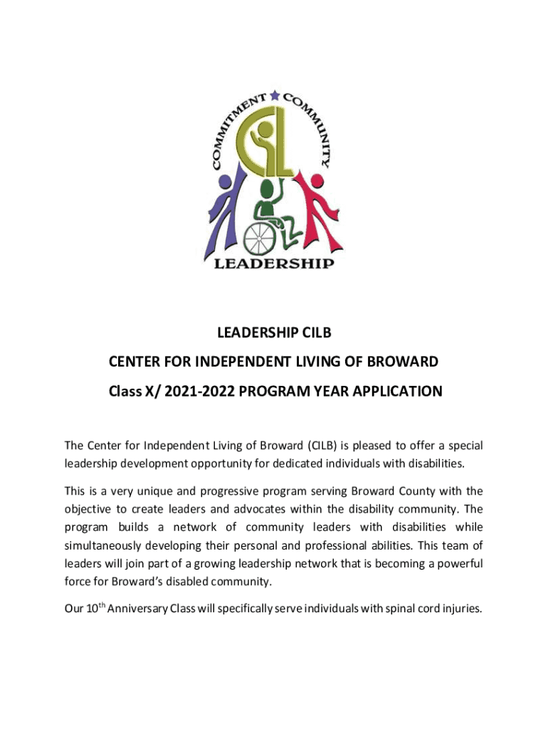 LEADERSHIP CIL CENTER FOR INDEPENDENT LIVING OF BROWARD Class X/ 20212022 PROGRAM YEAR APPLICATION The Center for Independent Living of Broward (CIL) is pleased to offer a special leadership development