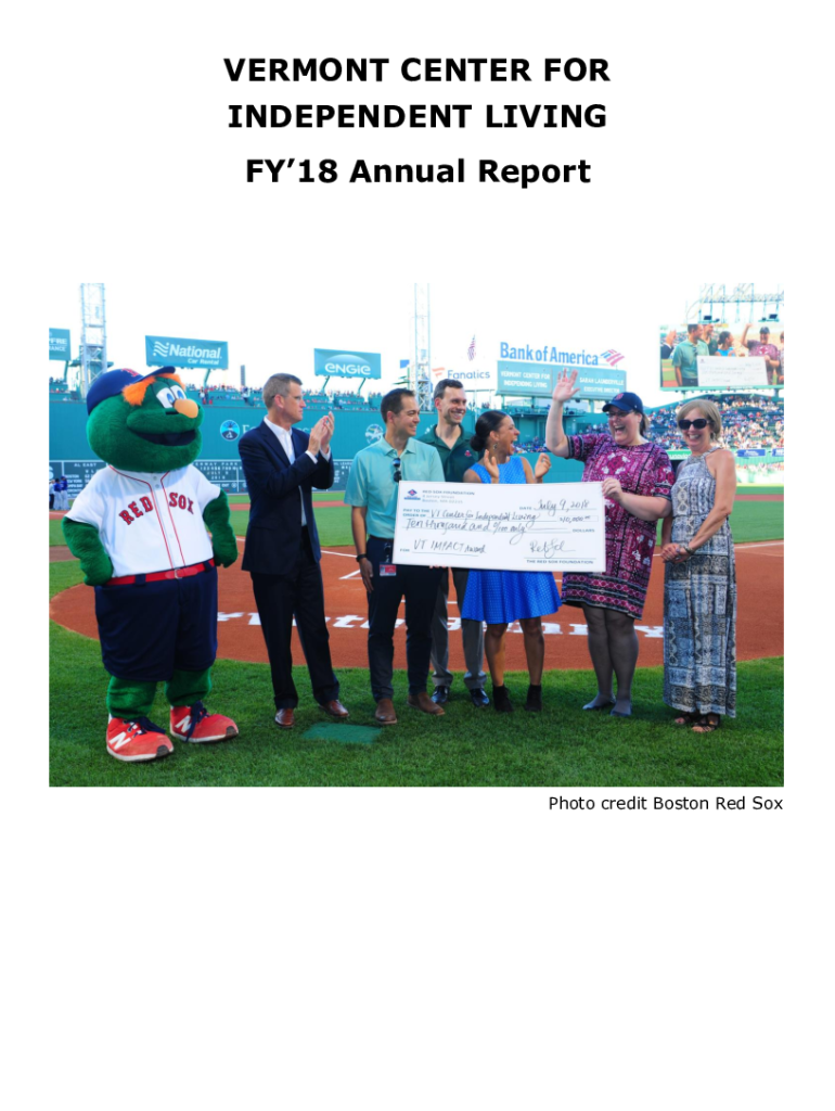 VERMONT CENTER FOR INDEPENDENT LIVING FY18 Annual ReportPhoto credit Boston Red Sixths annual report is dedicated to the independent living leaders who we sadly lost this past year. Patrick Fitzgerald