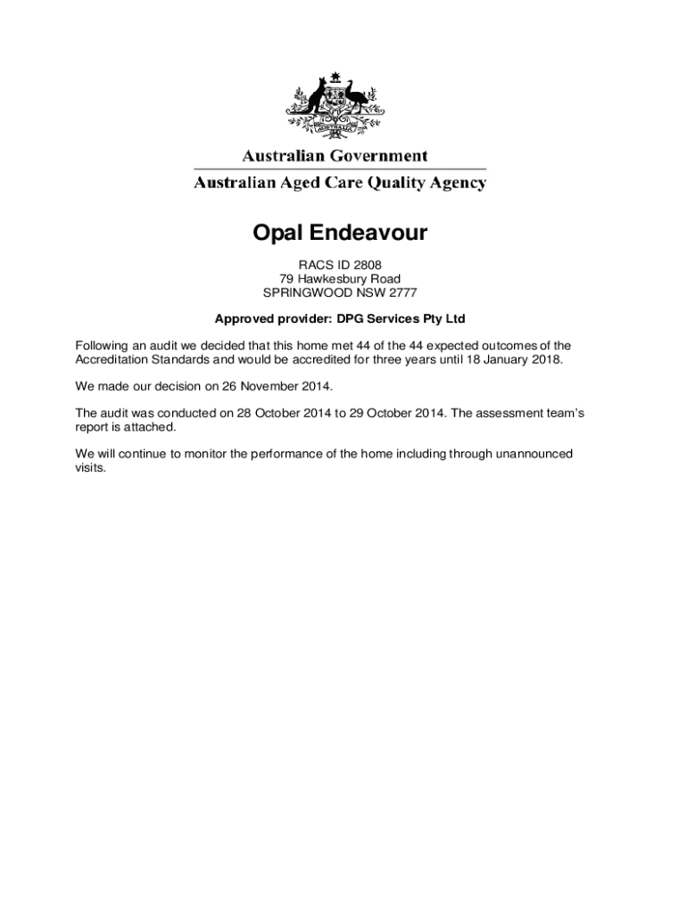 Get the free Opal Endeavour - Aged Care Quality and Safety Commission