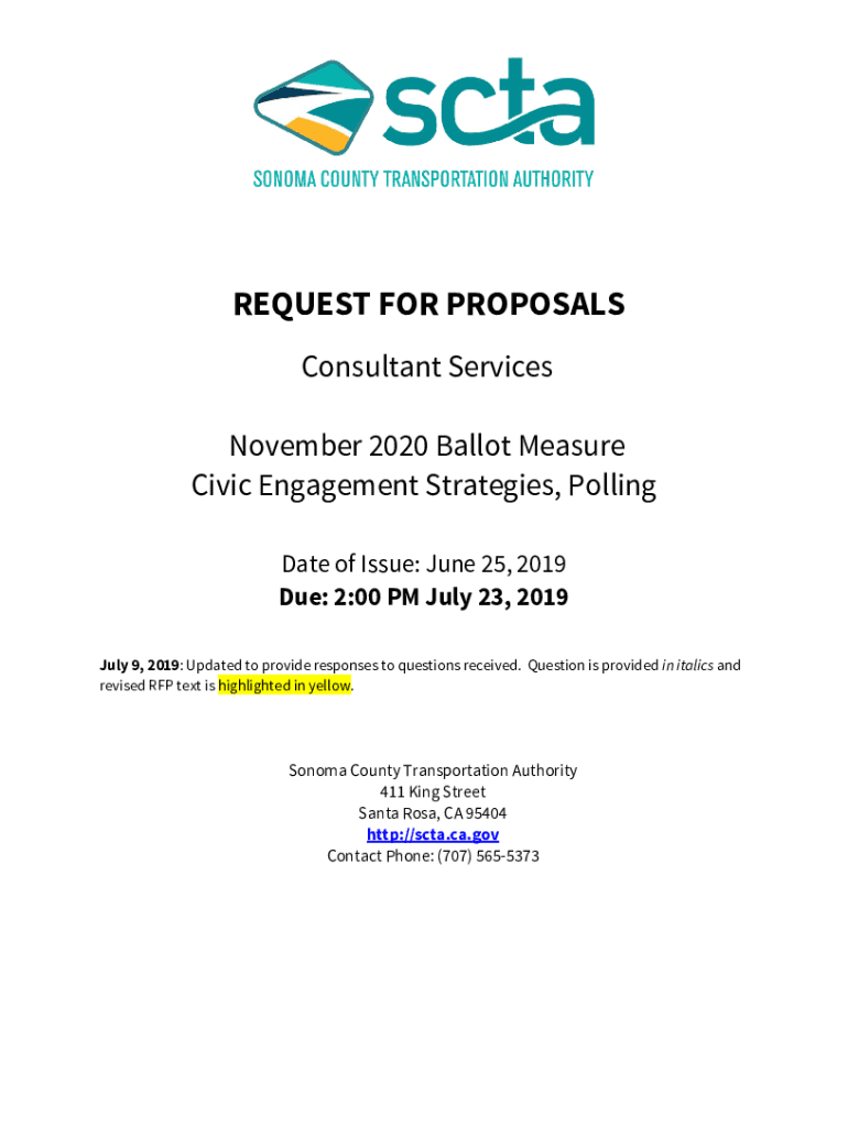 REQUEST FOR PROPOSALS Consultant Services November 2020 Ballot Measure Civic Engagement Strategies, Polling Date of Issue: June 25, 2019, Due: 2:00 PM July 23, 2019, July 9, 2019: Updated to provide
