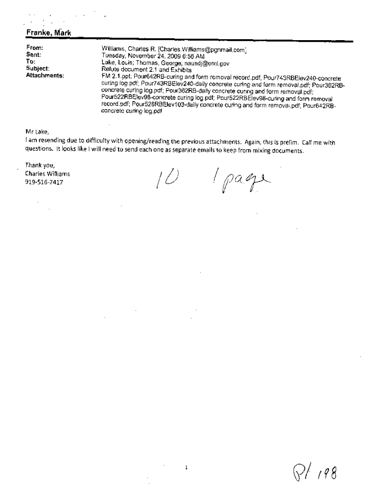 France, Mark From:Sent: To:Subject: Attachments:Williams, Charles R. [Charles.Williams@pgnmail.com] Tuesday, November 24, 2009 6:56 AM Lake, Louis; Thomas, George; nausdj@ornl.gov Refute document