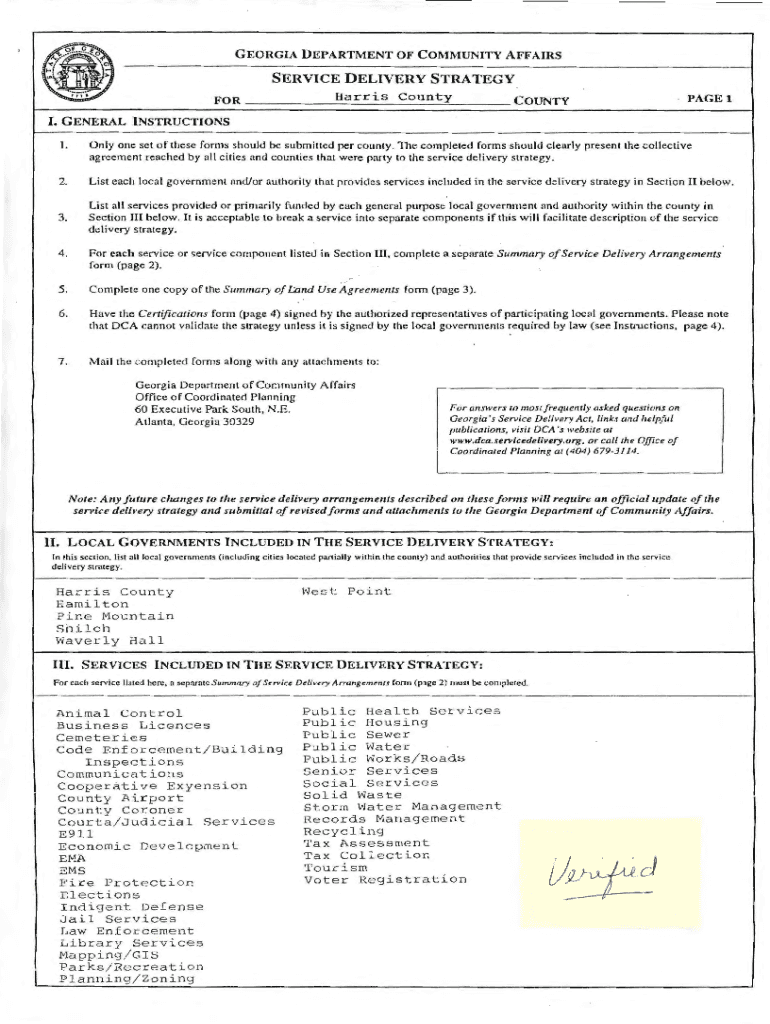 GEORGIA DEPARTMENT OF COMMUNITY AFFAIRS SERVICE DELIVERY STRATEGY Fora RR is CountyCOUNTYPAGElI. G GENERAL INSTRUCTIONS I. Only one set of these phones should be submitted per county. The completed