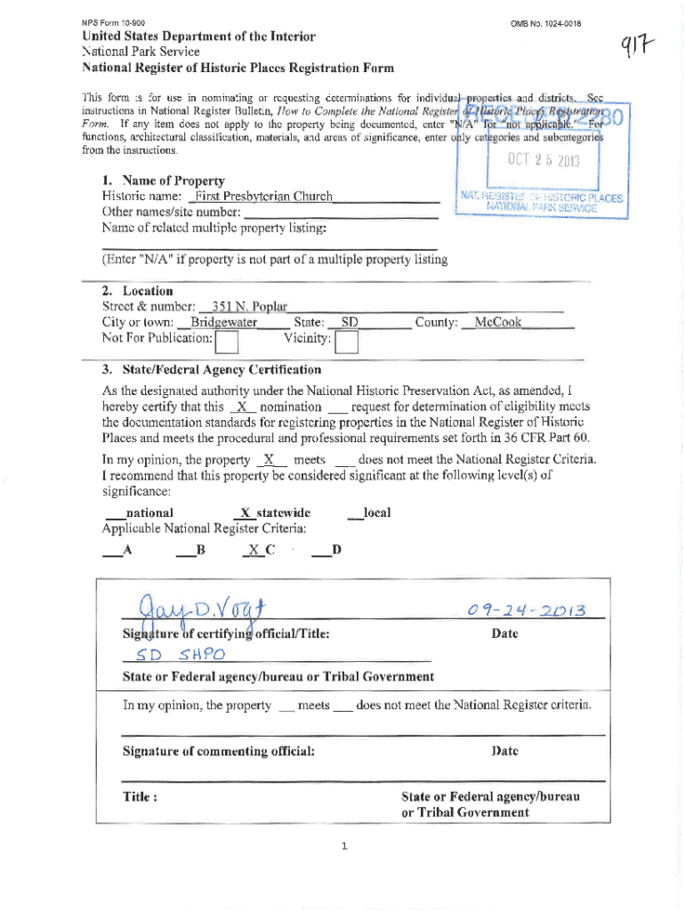 Get the free NFS Form 10-900 MB No. 1024-0018 United States Department of the ...