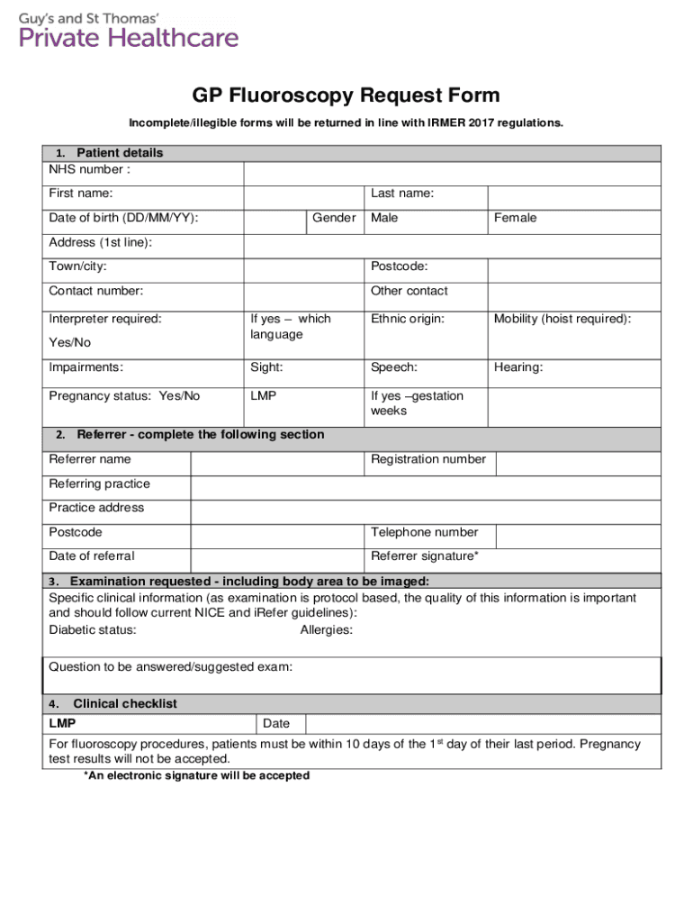 Get the free GP Fluoroscopy Request Form - Guys and St Thomas Private Healthcare