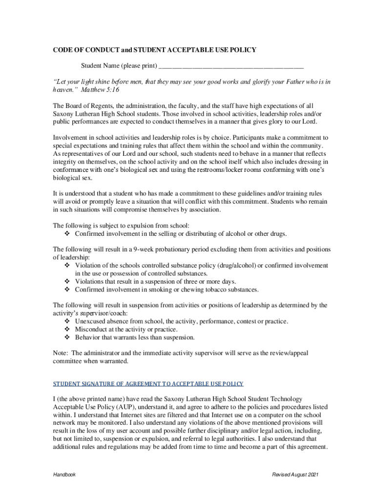 Saxony Lutheran High SchoolStudent Handbook 2021 2022 Sharing ChristShaping LivesHandbookRevised August 2021MISSION STATEMENT Saxony Lutheran High School exists to center students on Christ and Gods