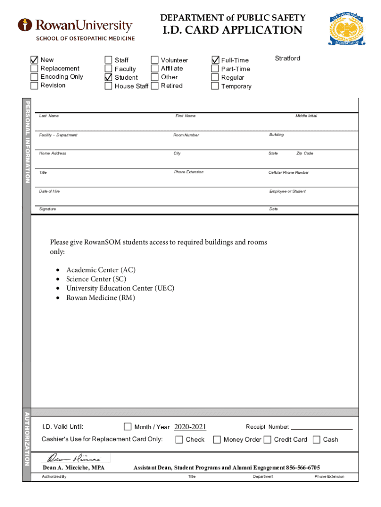 DEPARTMENT of PUBLIC SAFETY. D. CARD Application Replacement Encoding Only RevisionStaff Faculty Student House StaffPERSONAL Informational NameStratfordFullTime Maritime Regular TemporaryVolunteer