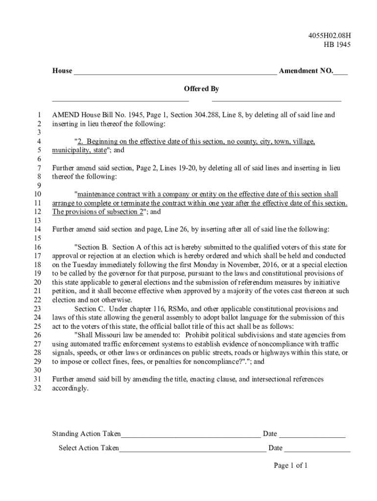 4055H02.08H HE 1945 House ___ Amendment NO.___ Offered By ___ ___ 1 2 3 4 5 6 7 8 9 10 11 12 13 14 15 16 17 18 19 20 21 22 23 24 25 26 27 28 29 30 31 32AMEND House Bill No. 1945, Page 1, Section 304.288,