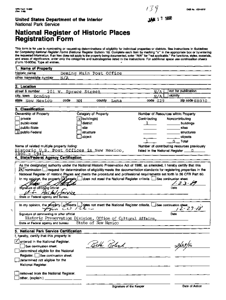 NFS Form 10400 (Rev. 846)OUT No. 10240018United States Department of the Interior National Park ServiceNational Register of Historic Places Registration Form This form is for use in nominating or
