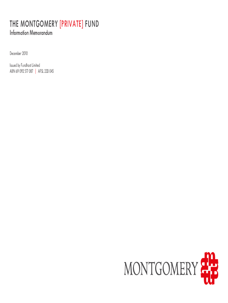 THE MONTGOMERY [PRIVATE] FUND Information Memorandum December 2010 Issued by Fund host Limited ABN 69 092 517 087 | ADSL 233 045IMPORTANT INFORMATION About this Information Memorandum Montgomery Investment