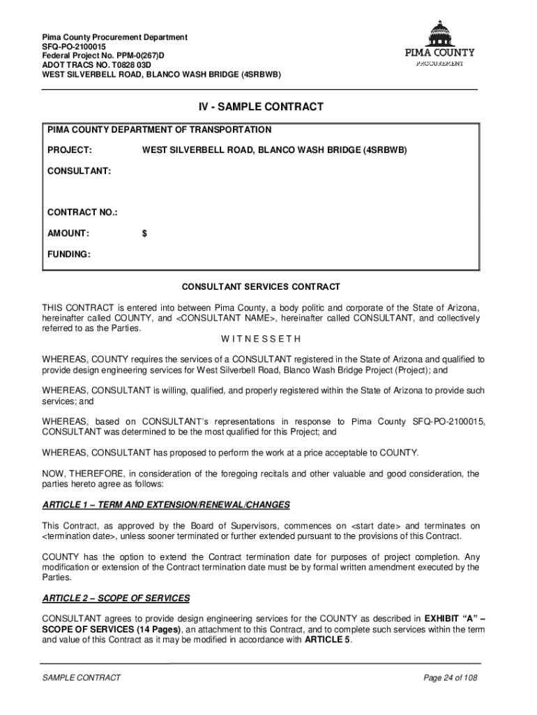 Pima County Procurement Department SFQPO2100015 Federal Project No. PPM0(267’D ADOPT TRACK NO. T0828 03D WEST SILVERED ROAD, BLANCO WASH BRIDGE (4SRBWB)IV SAMPLE CONTRACT PIMA COUNTY DEPARTMENT