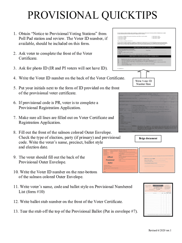 PROVISIONAL QUICKIES 1. Obtain Notice to Provisional Voting Stations from Poll Pad station and review. The Voter ID number, if available, should be included on this form. 2. Ask voter to complete