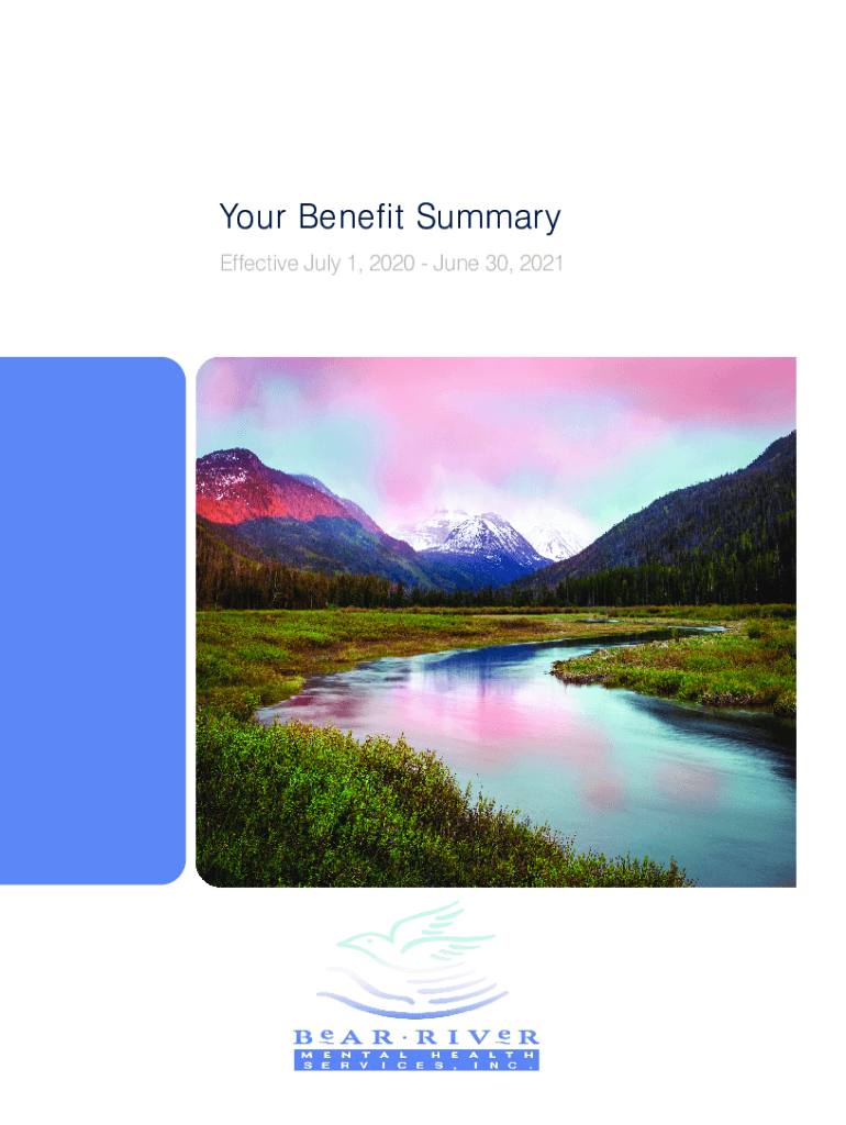Your Benefit Summary Effective July 1, 2020, June 30, 2021Bear River Mental Healthcare OF CONTENTS WELCOME TO YOUR BENEFITS.........................................................................................................3
