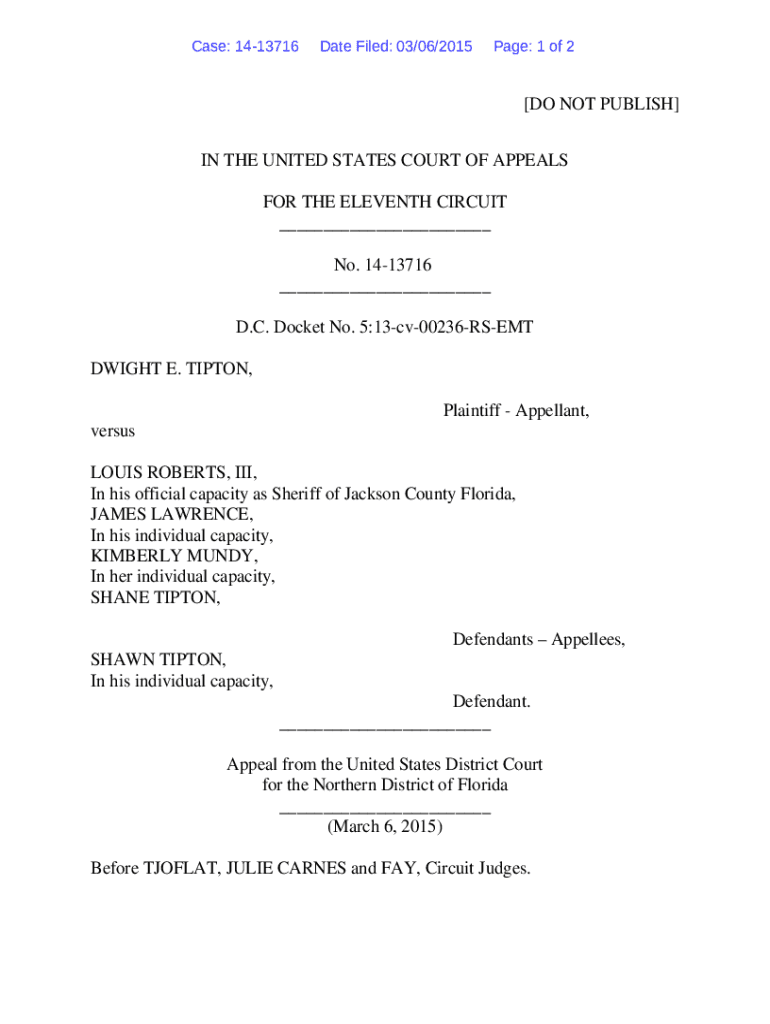 Case: 1413716Date Filed: 03/06/2015Page: 1 of 2[DO NOT PUBLISH] IN THE UNITED STATES COURT OF APPEALS FOR THE ELEVENTH CIRCUIT ___ No. 1413716 ___ D.C. Docket No. 5:13cv00236RSEMT DWIGHT E. LIPTON,