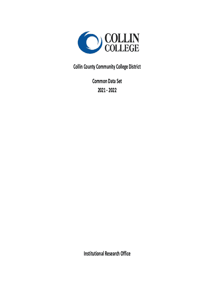 Collin County Community College District Common Data Set 2021 2022Institutional Research Office. General Information A1Address Information Name of College/University: Mailing Address: City/State/Zip/Country: