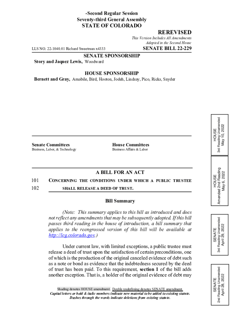 Second Regular Session Seventy third General AssemblySTATE OF COLORADOREREVISED This Version Includes All Amendments Adopted in the Second Housemate BILL 22229LLS NO. 221040.01 Richard Sweet man x4333SENATE