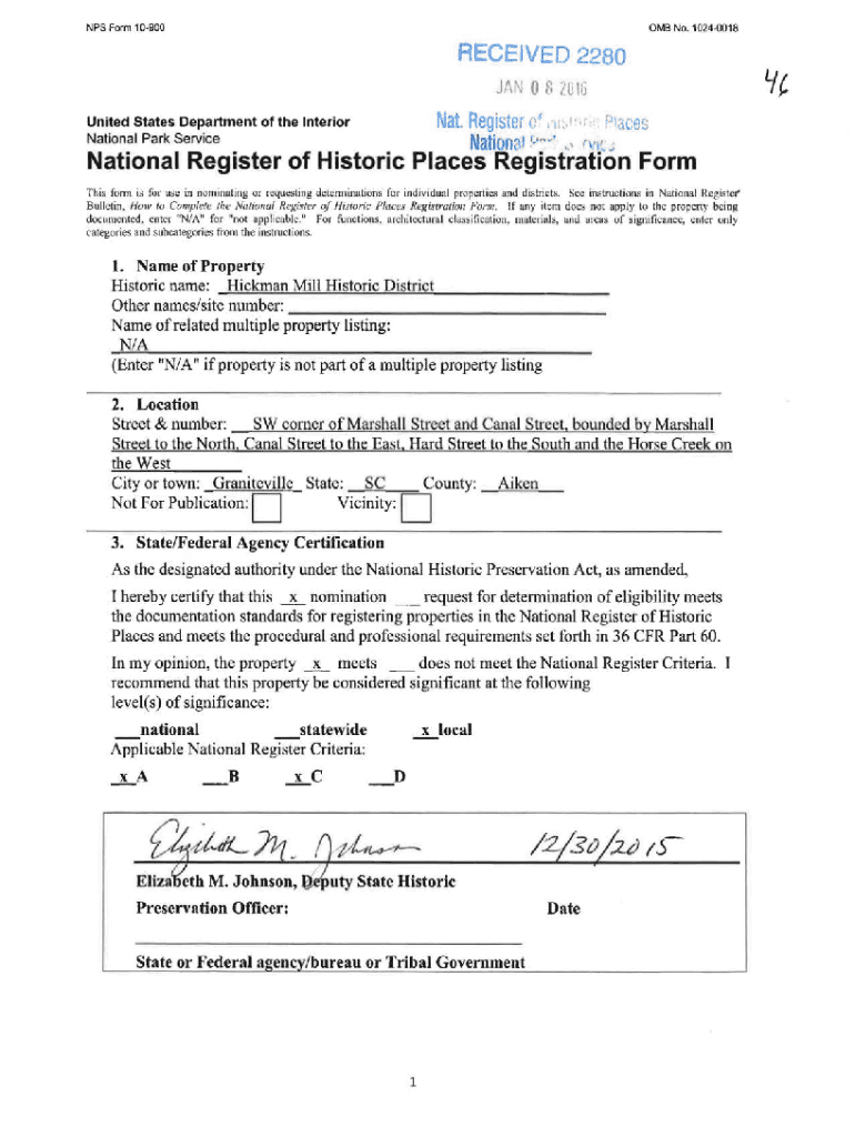NPS Form 109000 MB No. 10240018RECEIVED 2280 JAN O8 20i6Nat. Register cf)11.:;r:c Places National !.. . Raw 5United States Department of the Interior National Park ServiceNational Register of Historic