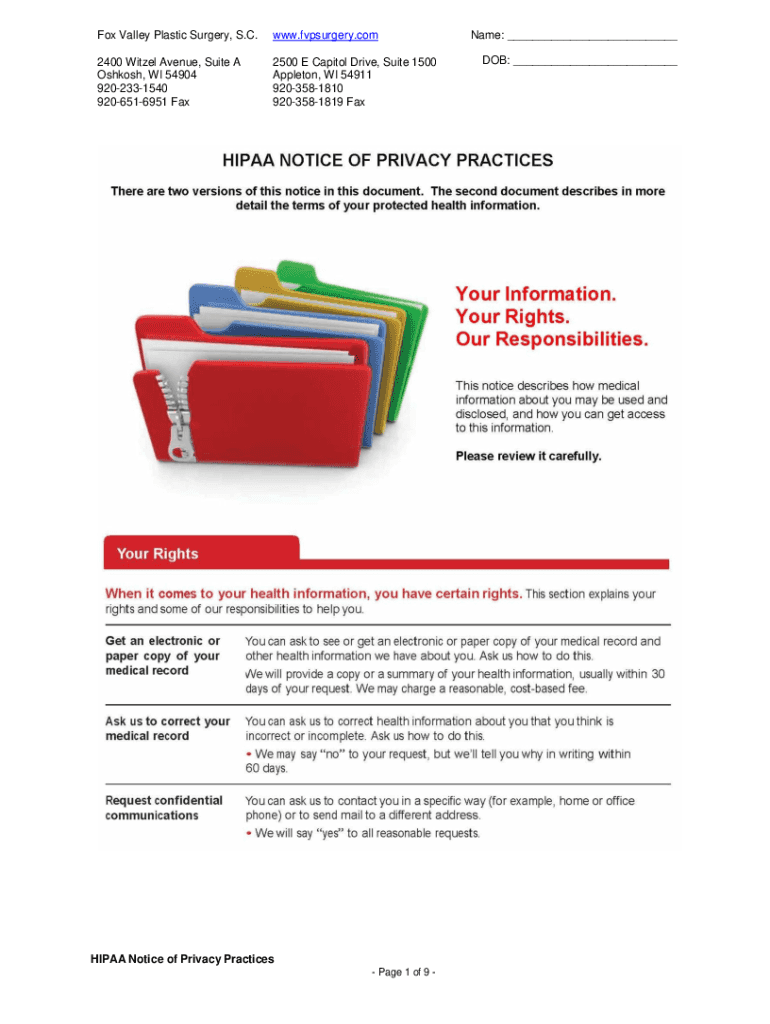 Fox Valley Plastic Surgery, S.C.www.fvpsurgery.com2400 Wetzel Avenue, Suite A Oshkosh, WI 54904 9202331540 9206516951 Fax2500 E Capitol Drive, Suite 1500 Appleton, WI 54911 9203581810 9203581819 HIPAA