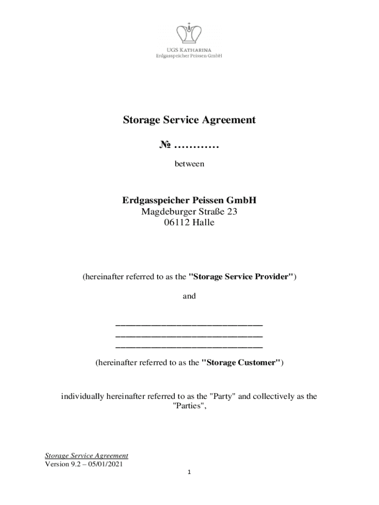 Storage Service Agreement betweenErdgasspeicher Passed GmbH Magdeburg Straw 23 06112 Halle(hereinafter referred to as the \” Storage Service Provider\”) and___ ___ ___ (hereinafter referred to
