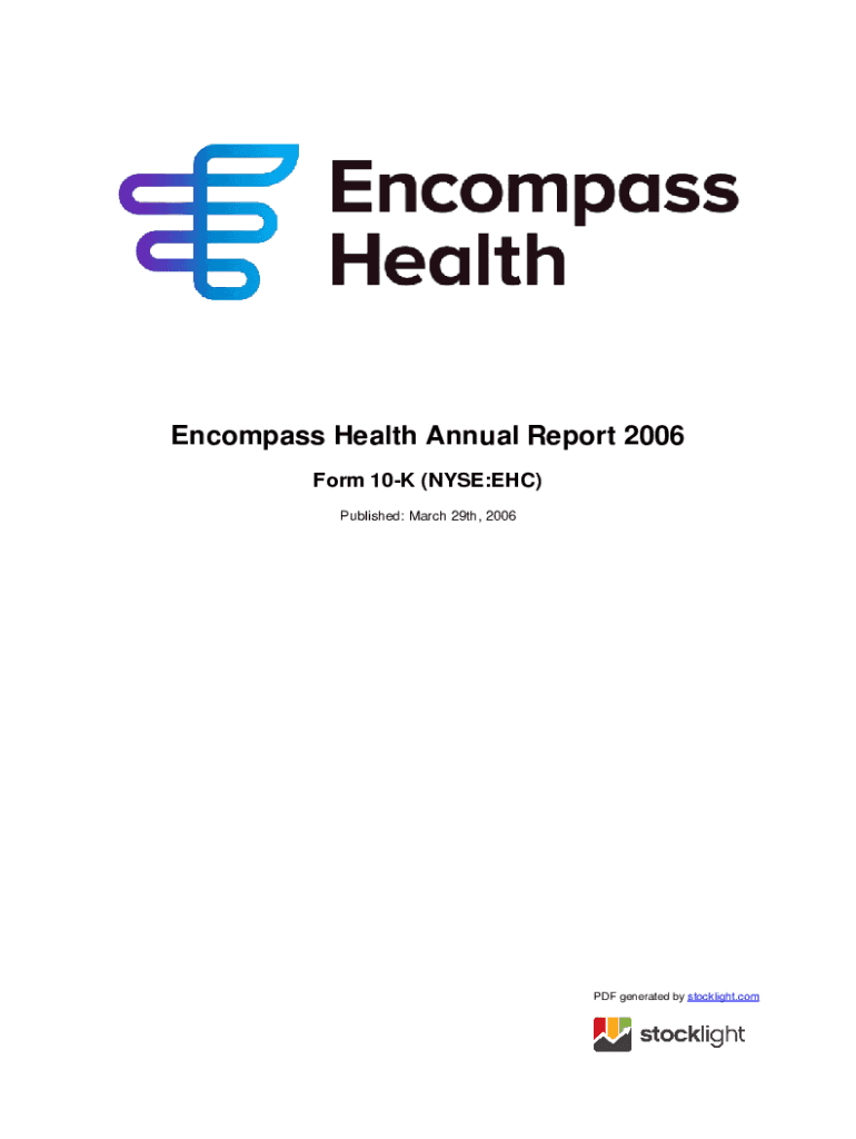 Encompass Health Annual Report 2006 Form 10K (NYSE:ETC) Published: March 29th, 2006PDF generated by stock light. Counted STATES SECURITIES AND EXCHANGE COMMISSION WASHINGTON, DC 20549FORM 10K ANNUAL