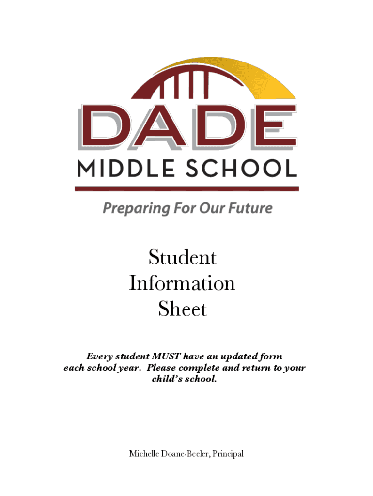 Student Information Sheet Every student MUST have an updated form each school year. Please complete and return to your children school. Michelle DoaneBeeler, Principal HR Teacher: ___ School Year: