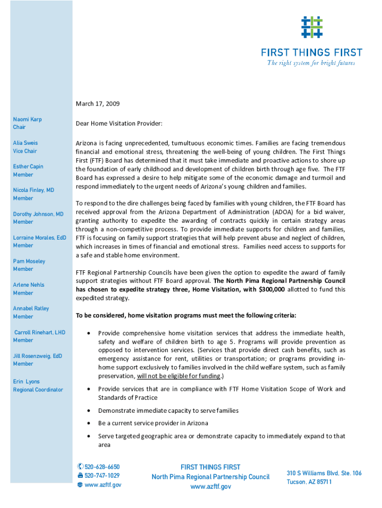 Get the free North Pima Expedited Home Visitation Cover Letter