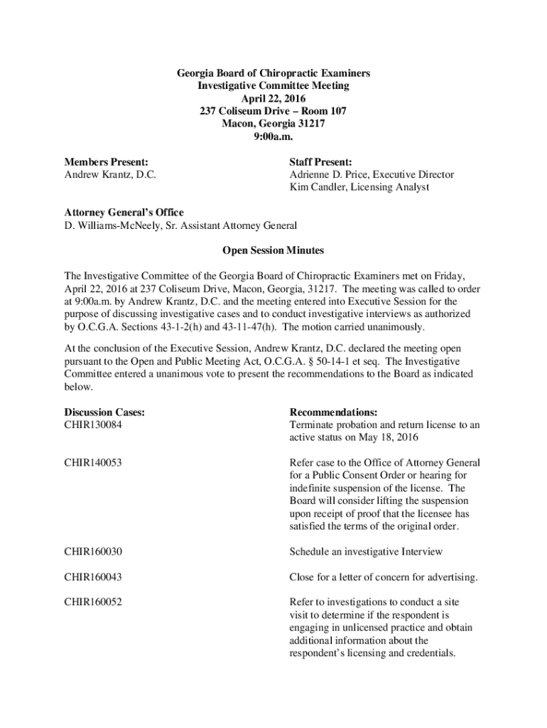Get the free Georgia Board of Chiropractic Examiners Investigative Committee ... - sos ga