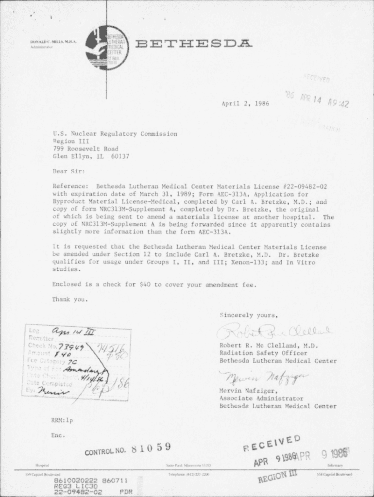 .\', ...meat, E T H E S Due.*|::\”\'.t:Entire! EW\'Craggy a/PR14 A9|42April 2, 1986ci. U.S. Nuclear Regulatory Commission Region III799 Roosevelt Road Glen Ellyn, IL 60137 Dear Sir:Reference:Bethesda